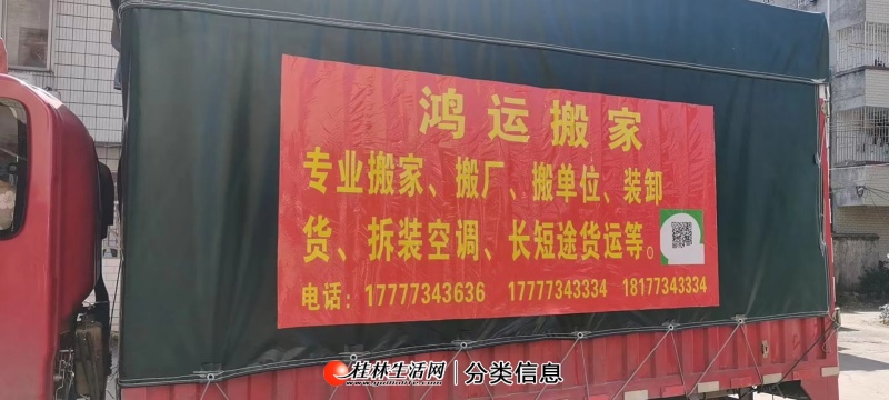[搬家] 桂林鸿运搬家/专业搬家/搬厂/搬单位/搬设备/空调拆装/装卸货/长短途货运 加入收藏我要举报