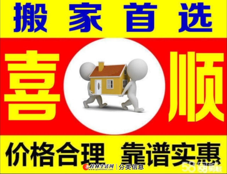 桂林喜顺搬家公司承接桂林搬家搬厂、公司门面搬迁、钢琴搬运、桂林到全国长途搬家拉货、设备搬运、装车卸货、红木家具打包搬运、拆装空调家具等一切搬运业务,10年搬运经验、价格实惠,欢迎来电咨询