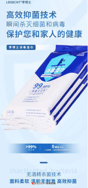 李博士防蚊虫消毒湿巾,含液率高于普通市售湿巾15%;保质期三年,包材是铝塑复合膜,比普通塑料膜的阻透性高1000倍。基本上就是不透气,不透水!