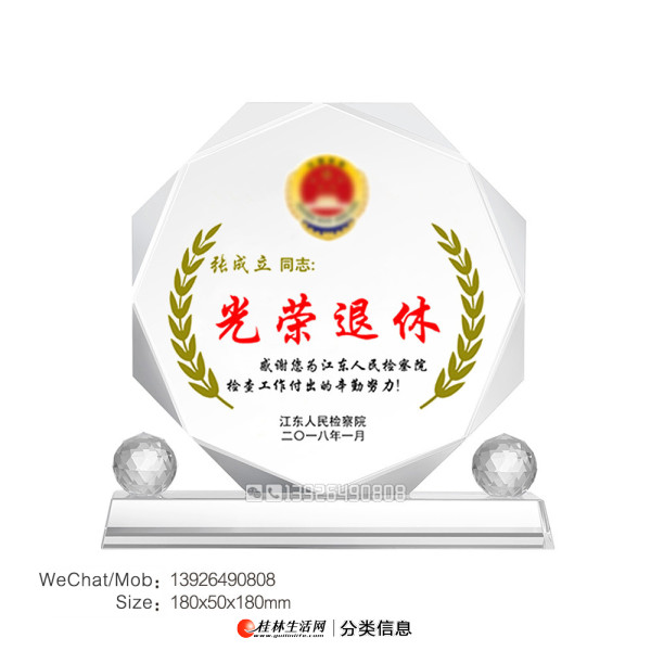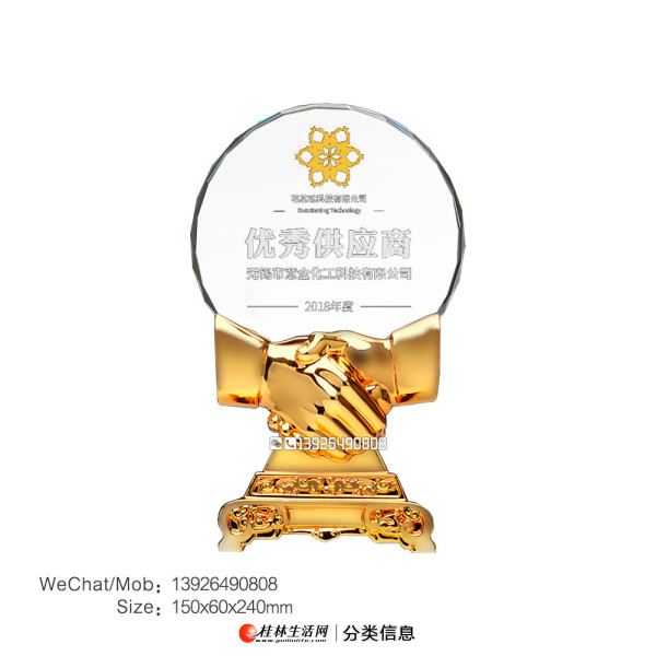 此产品是厂家直销,用人造水晶一级K9材料做成.此产品从选料开始到成品是经过一系列复杂工序完成.并非一次型成型.而且当中多道工序是全手工做成,具有高难度的技术含量,能体现出高尚的艺术精神.是你赠友/商务/摆设/自藏的首 选.水晶是圣洁和能量的象证,并能消灾避邪,保佑平安,是象征纯洁的信物。此水晶工艺品由一批优 秀的设计,生产人才研究制作而成。选材精良,纯手工制作,造型典雅别致,高 档精装,具有浓厚的文化内涵和不凡品位,令人爱不释手。可作艺术品欣赏、收藏,更是各种商务、会展、庆典及各种外事往来的理想馈赠纪念品。