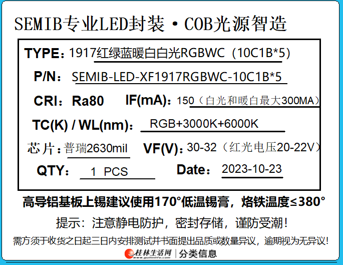 4型号:SEMIB-LED-XF1917RGBWC-10C1B*5