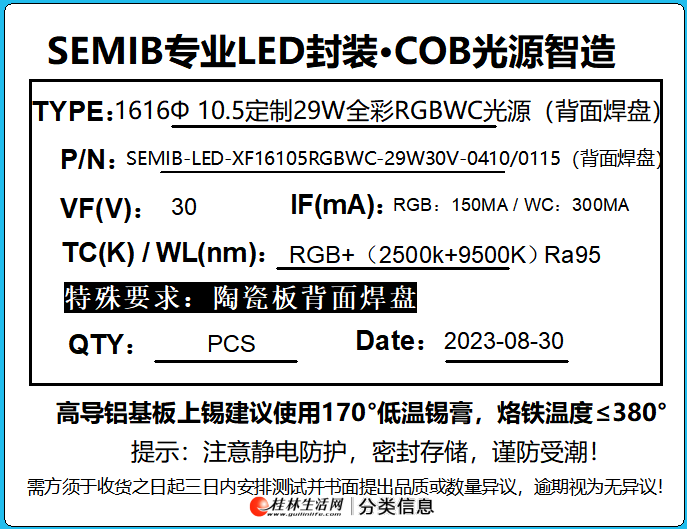2产品名称:1616&10.5定制29W全彩RGBWC光源(背面焊盘)