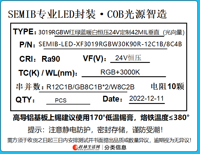 2产品名称:3019RGBW红绿蓝暖白恒压24V定制42MIL垂直(光向量)