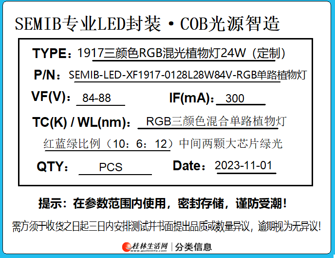 4型号:SEMIB-LED-XF1917-0128L28W84V-RGB单路植物灯