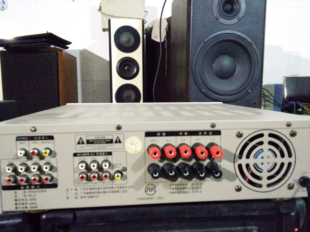 SONY组合音响3碟CD,独立的VCD,带环绕声四个音箱。主音箱带有高中低3个喇叭,有线路出入插口..