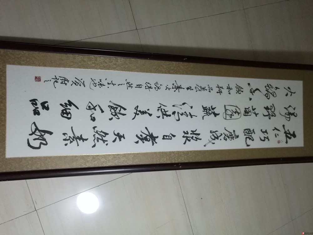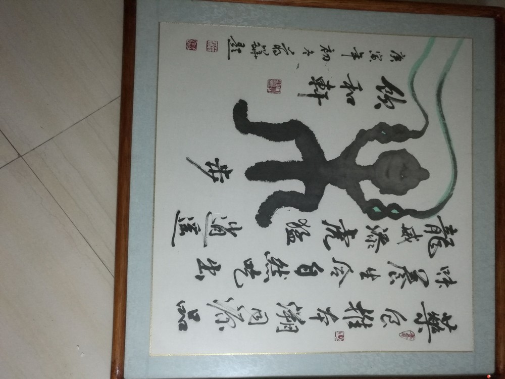 “药食推本溯同源  品味养生合自然   吃出龙威添虎猛   逍遥乐步饮和轩 ”,其中的乐字采用形象字所写,一个人高兴的手舞足蹈,代表快乐。