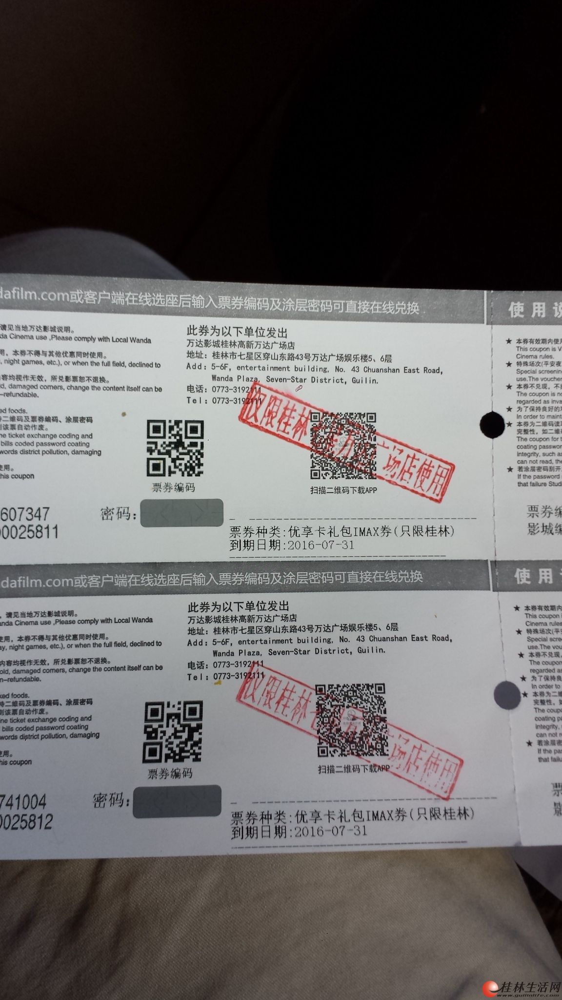 桂林万达IMAX电影票,单张45元,两张80元,2月1日到期。