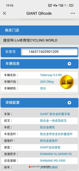 因工作调动,转让自用捷安特Tallerway 9.0RD 折叠自行车,买来就没怎么骑过,9.9成新,联系电话13367831104