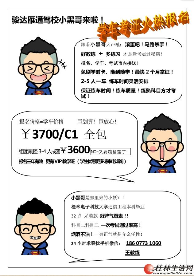 3 练车人数2人即可开班,保证练车时间,练车质量,练熟考试科目方才报考,针对学员出现问题进行专门指导(亦有vip班教学服务),人多组团优惠更多。