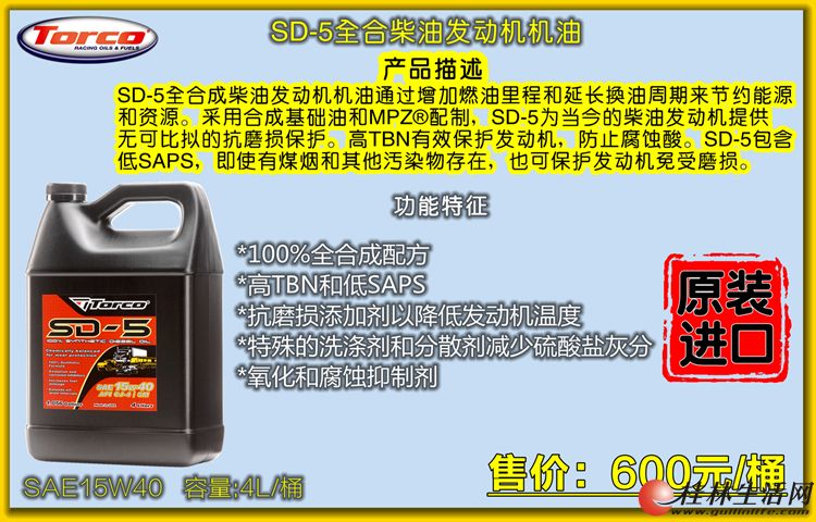 SD-5全合成柴油发动机机油通过增加燃油里程和延长换油周期来节约能源和资源。采用合成基础油和MPZ®配制,SD-5为当今的柴油发动机提供无可比拟的抗磨损保护。高TBN有效保护发动机,防止腐蚀酸。SD-5包含低SAPS,即使有煤烟和其他污染物存在,也可保护发动机免受磨损。