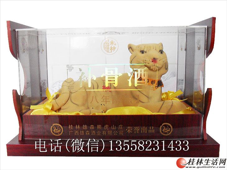 雄森牌补骨酒系桂林雄森熊虎山庄出产的一款高端酒类产品,也许受各方面因素的制约,目前全国各地零售市场还不多见,没有入手过这种酒的外界人士认为其只不过是一般的保健酒而已。其实不然,从整体包装设计来看,补骨酒显得非常高雅大气,颇具王者风范,方方正正高仿木质的酒盒,上方正中封口处贴有厂家激光防伪标识、“中国野生动物经营利用管理专用标识”这两个标签。酒盒一侧嵌套着透明有机玻璃,可清楚地窥见其内部呈卧虎状的酒瓶为陶瓷精工制作而成,相信单这一点就足让买家爱不释手了。而补骨酒最受外界关注的是其用来浸泡酒的原料,厂家标明补骨酒的原料为:非洲狮骨、名贵天然中草药、纯正米酒等,这一秘方使得补骨酒极具神秘色彩。据消息灵通人士透露,就连平时享用惯了诸如五粮液、茅台酒之类高档酒的社会精英,现在也逐渐把眼光瞄向补骨酒了,说明补骨酒质量和效果相当优秀相当给力。在这注重绿色与健康的时代,相信补骨酒必定为爱酒人士的秒杀对象,非常值得向公众推荐。桂林雄森熊虎山庄除了生产功效强大的补骨酒外,非常受消费者追捧的熊胆酒也是款经典力作的产品。祖国医学巨著《本草纲目》记载得非常清楚:熊胆为兽类中的胆中之王,具有清除百毒、利肝明目、祛湿热清心、安神定惊之神奇功效。护骨木瓜酒、蛤蚧酒作为桂林雄森熊虎山庄的经济型产品,虽然不似补骨酒、熊胆酒定位于高端,但其以温和的价格来迎合在预算方面不是很足的消费人士,也有不错的表现。