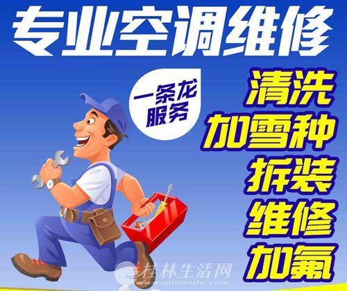 桂林家电维修 专业上门空调维修、拆装、移机、清洗保养、加氟、空调换管、更换压缩机、更换风扇、更换接收器、更换启动器、换支架、各种空调售后维修!全市1小时内师傅上门,24小时无休,合理收费含质保 “放心,省心”!欢迎随时来电!双休日节假日照常服务。在此我们郑重承诺:您看到的任何服务报价及服务均为我司桂林统一标准,无任何隐形收费,广大市民可以放心选择。服务方式:电话预约,免费上门,先议后修;如果选择维修,这里特别承诺,我们不收取任何上门费,检修费!!!空调安装、空调保养、空调拆机、空调加雪种(加氟)、空调换管、空调更换压缩机、空调更换风扇、空调更换接收器、空调更换启动器、空调换支架、各种空调售后维修!空调不制冷,效果差故障原因分析:1、空调缺氟---------------报修后由专业人员检测加氟。2、压缩机工作不正常-------报修后由专业人员检查原因并排除故障。3、外机散热不良-----------报修后由专业人员清洗、移机或加装遮阳罩。4、空调整机工作不正常------报修后由专业人员检查原因并排除。5、空调房间保温性能差------自己改善房间保温性能。6、空调使用设置不正常------参照说明书重新设置。主要维修品牌:美的空调维修、格力空调维修、奥克斯空调维修、三星空调维修、海尔空调维修、三菱空调维修、海信空调维修、惠而浦空调维修、TCL空调维修、伊莱克斯空调维修、松下空调维修、日立空调维修、春兰空调维修、三洋空调维修、志高空调维修、科龙空调维修、三菱空调维修、格兰仕空调维修、长虹空调维修、澳柯玛空调维修、开利空调维修、夏普空调维修、我们的承诺:1、专注于各种家用空调维修、空调加氟、空调不制冷、空调移机、空调拆装、空调清洗、空调保养一条龙服务。整个团队拥有10年以上专业空调维修经验!(确保服务质量)2、正规厂家配件,严格执行国家保修规定,保修期内出现同一问题免费维修。3、价格透明,严格按照统一核定的价格表收费。