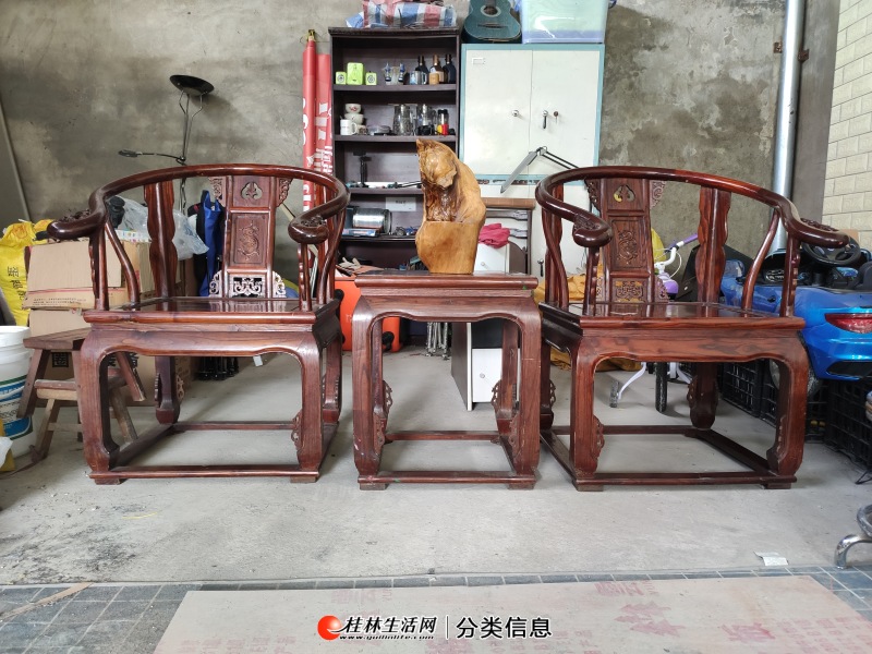上世纪九十年代末全实木老榆木圈椅加茶几一套,保养得不错,8成新左右,圈椅坐高48CM,总宽75CM,高95CM,茶几尺寸44*47*59CM。经典中式家具,岁月蹉跎,有碰伤划伤局部开裂花饰掉落在所难免,介意的朋友勿拍,只要1600元自提,货在桂林七星区湖塘路南冷家村斜对面绿巨能回收七星区分部,感兴趣的朋友联系我说是桂林生活网看到的。