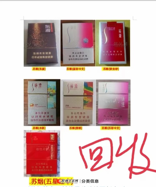长期大量回收空烟盒,现回收品牌有苏烟,延安1935,长白山,蓝芙蓉王,好猫,黄鹤楼,黄山,泰山,利群,七匹狼,人民大会堂,只收价格20元以上的烟盒,有货的或者想了解的可以联系微信18677335249